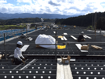 当社には、床版工事に関して、鉄筋加工組立~型枠加工組立~コンクリート打設(左官別)というフローを一貫して施工できる多能工とそれを管理する管理者が多数在籍しています。そのため各業者間で起こる引継ぎや手持ち時間を省くことができ、高い水準で統一された品質が提供できます。